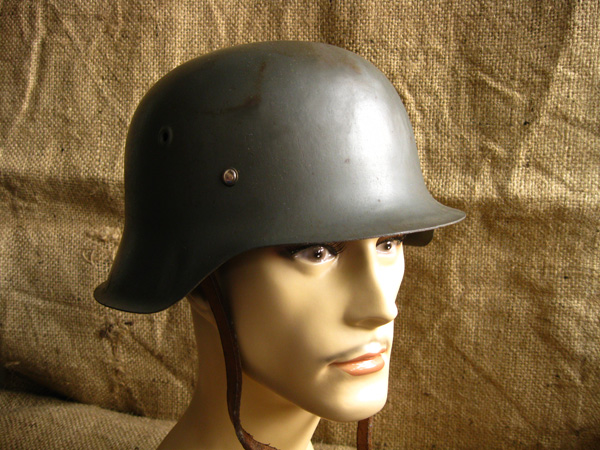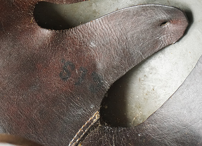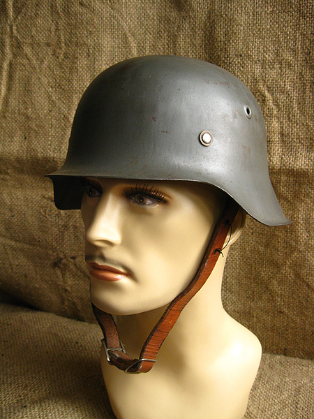 1945年德国投降后作为对受害国的补偿,将战后剩余物资赠送给挪威,挪威军方将头盔回役,更换上挪威军方内衬(皮内衬带军方验证标记),该盔56头围,适合最大57头围的人。