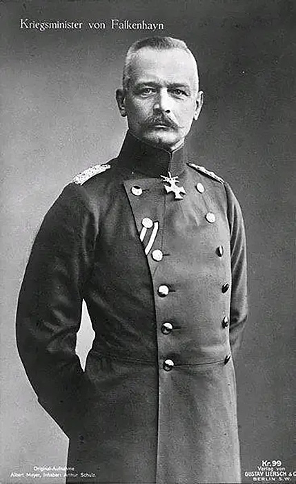 埃里希·冯·法金汉,德国军事家、步兵上将。1896年至1903年在中国服役,任张之洞创办的湖北武备学堂的教官,后来参与了八国联军入侵中国的战争。1914年至1916年间任德军总参谋长,是第一次世界大战的发动者之一。
