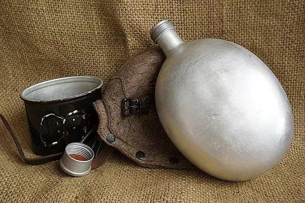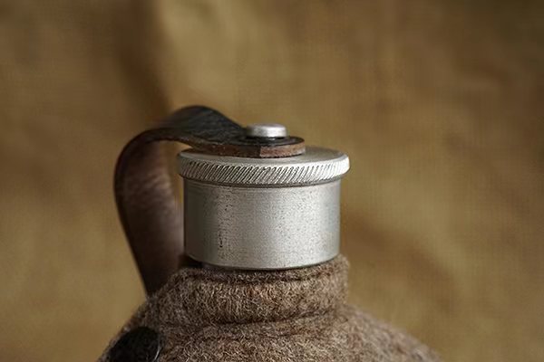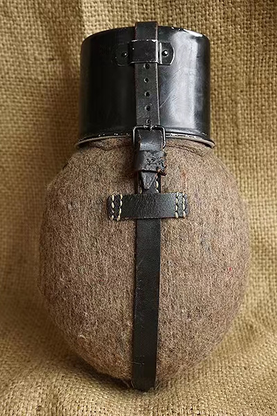 保存状态一流,壶身没有磕碰,包裹羊绒没有破损。该款水壶属于山地师/军医使用,容量1升,比普通陆军的容量要大(陆军容量0.7升)。
