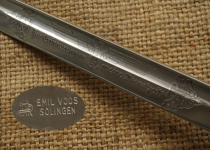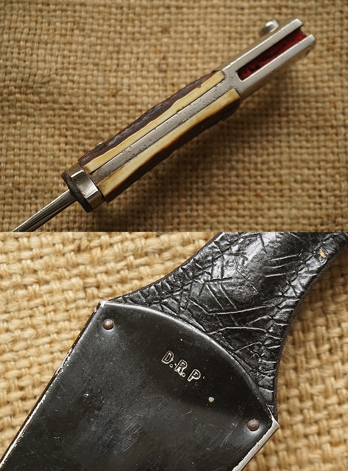 全品相刀身,鞘原漆约90%,原皮挂背面有第三帝国DRP邮政简写,全称Deutsche Reichspost,极其稀罕小部门刀种。
