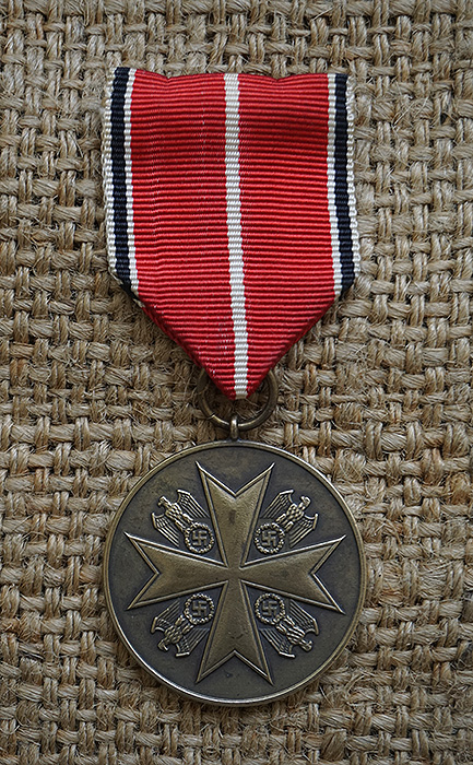 当年由纳粹政府颁发的一项外交荣誉奖,主要授予对象是为德国作出杰出贡献的外国人,特别是外交人员。该章铜质,挂环上标记30,即由奥地利维也纳厂生产。背面德文Deutsche Verdienst- Medaille,大意为功勋奖章。