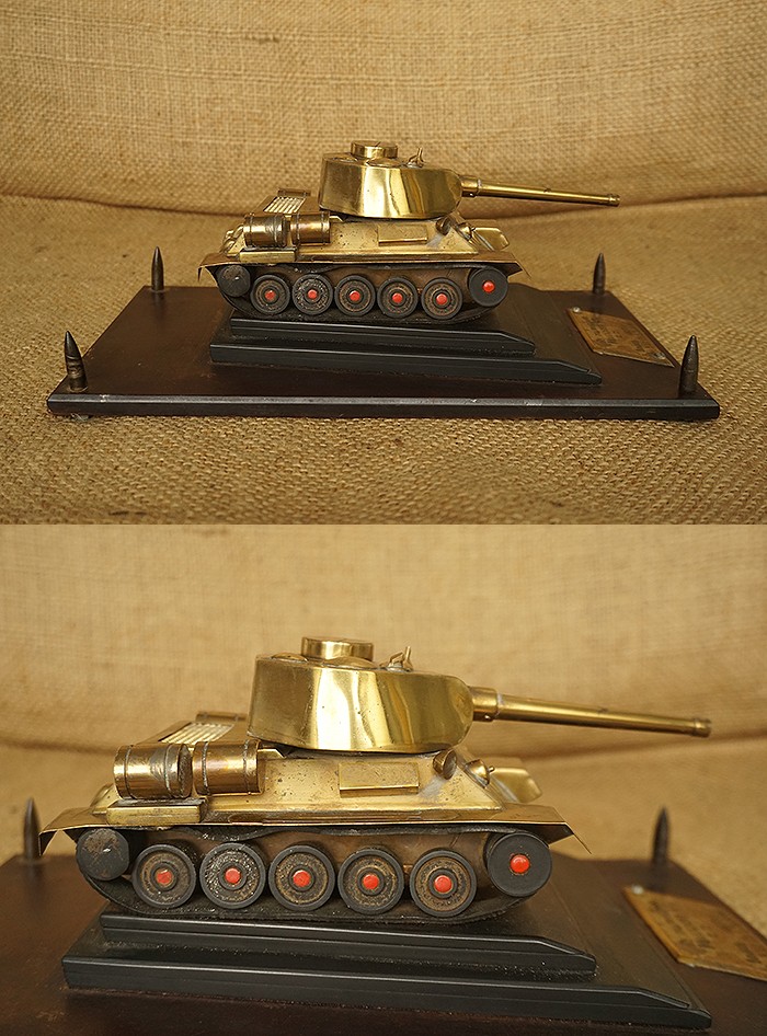 坦克尺寸:10X16.5CM,底座板:31X17CM,模型坦克全身铜材质,车身各个细节的刻画都非常到位。