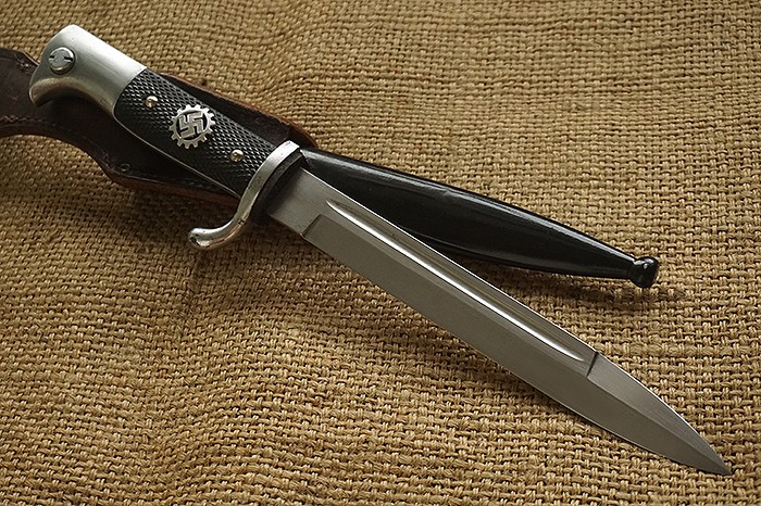 带原皮挂,鞘漆保存基本完整,鞘面遗留轻微小磕碰,不太显眼。刀身全品相。