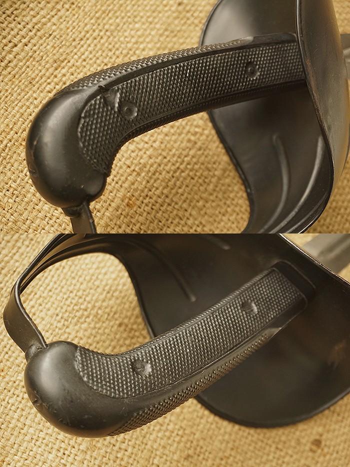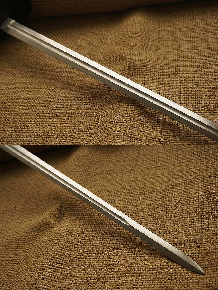 总长110CM。亚麻纤维上漆包裹木鞘再套上铁质构件,刀身洁净无伤,着重穿刺型攻击设计,配合夸张的包裹型护手,极具骑士风范。
