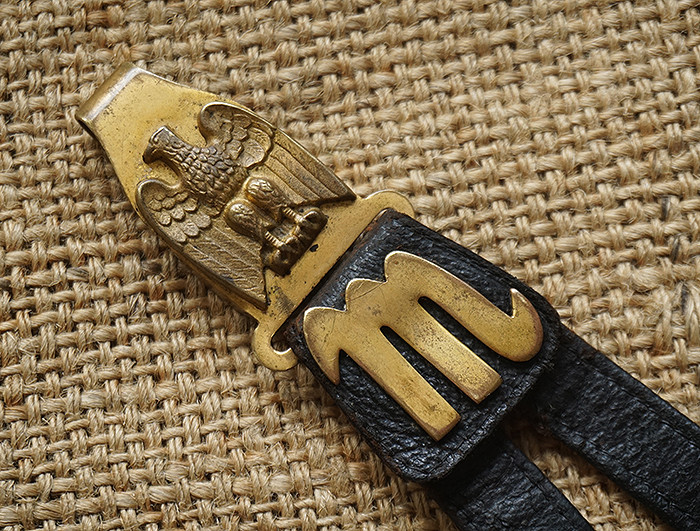 总长34.5CM,意大利高层使用,轻微进出鞘及夹片痕迹。皮挂保存完整,无破损。