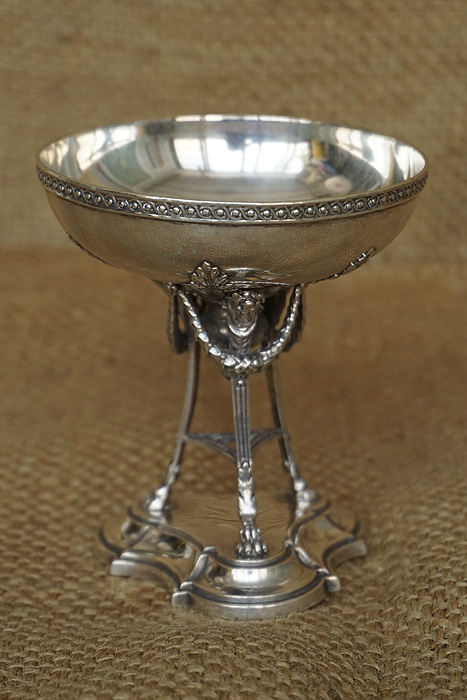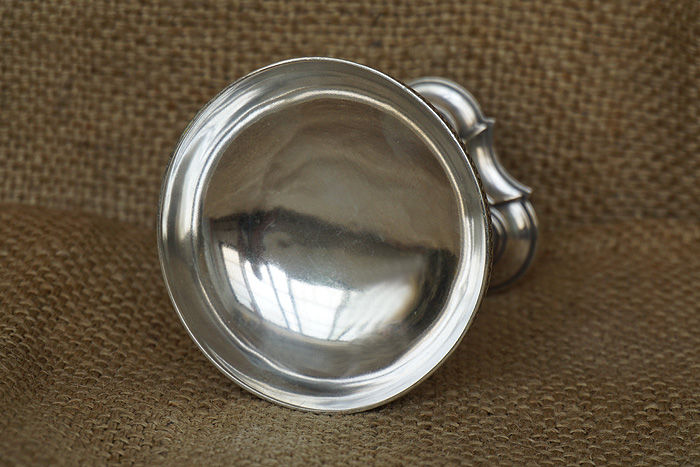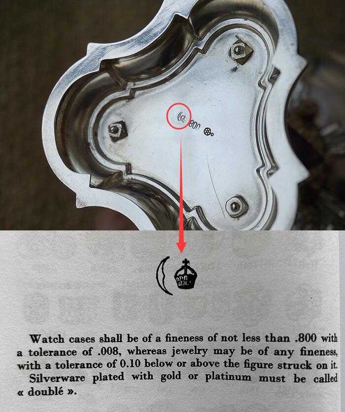 高9.5CM,直径8.5CM。月亮+皇冠标,800银,重133克。高脚造型,底部为狮爪设计,以橡叶为托,做工精细,观赏性更甚于实用性。