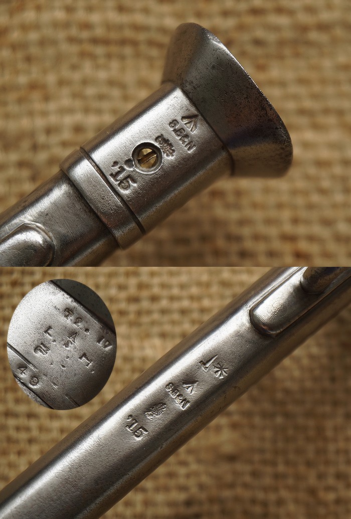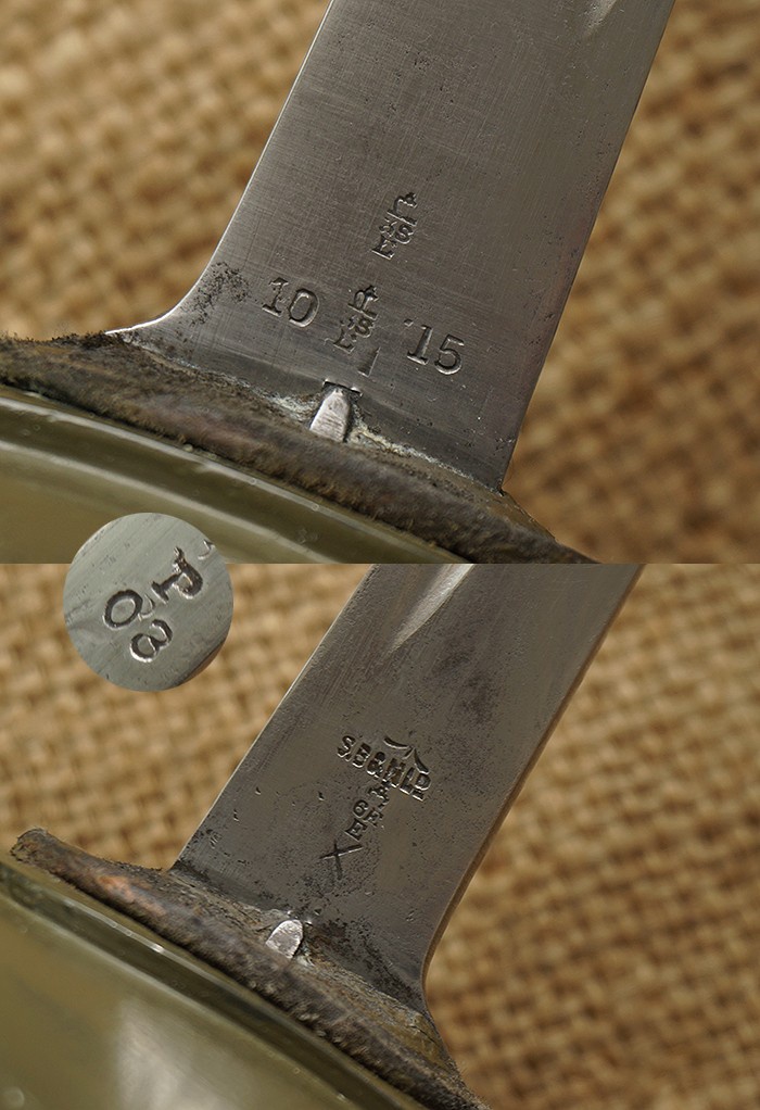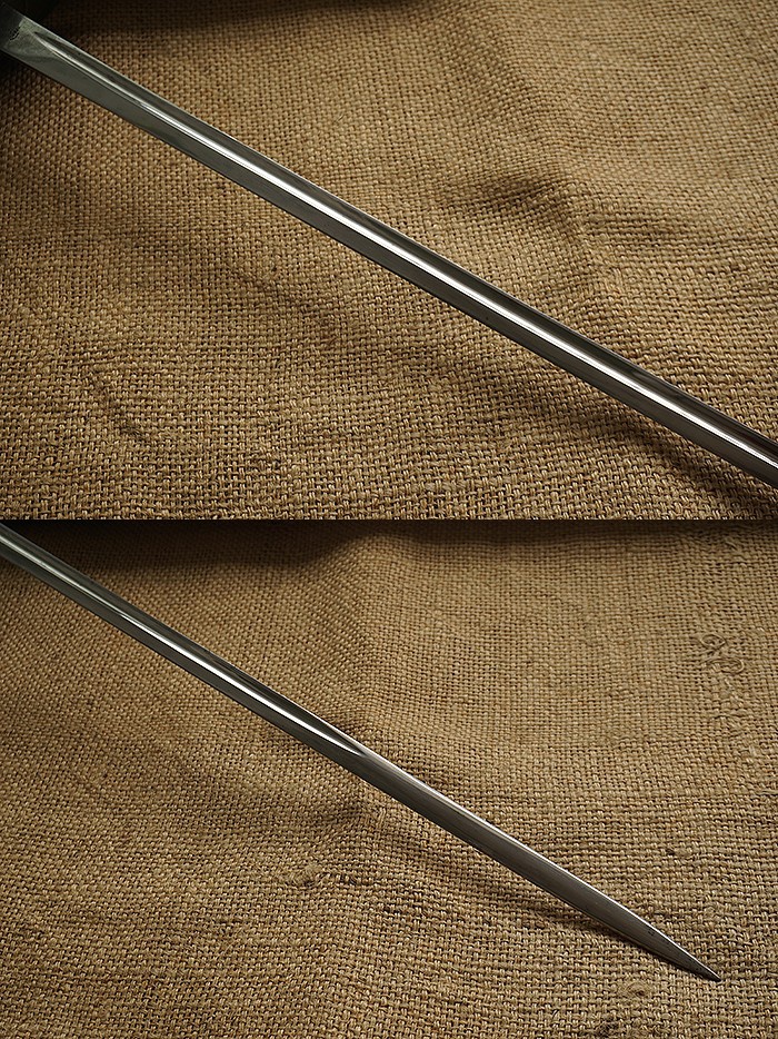 一把极具骑士风范的重骑兵,也是英军部队最后一款制式骑兵军,设计专为重骑兵使用,特别强调刺击功能。 该刀总长113CM,宽大包裹形护手刷大绿漆,接近全品刀身轻微锈污。镀镍刀鞘无明显磕碰,遗留少许历史锈污。