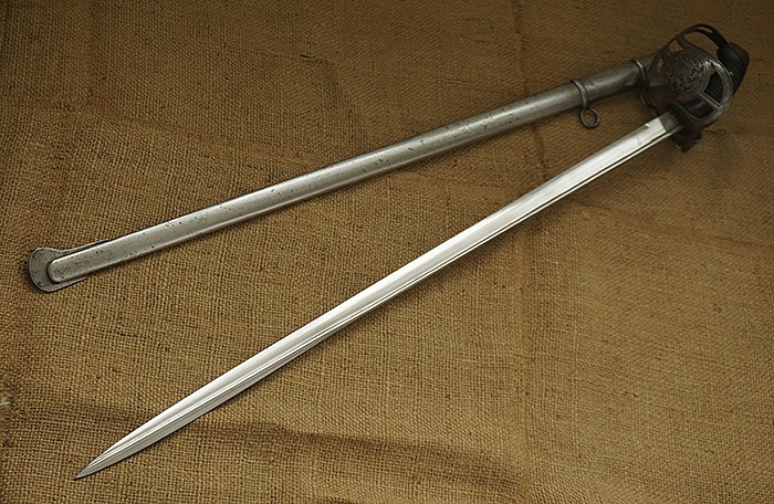 总长101厘米,全品相剑身,护手与刀鞘少许锈污。