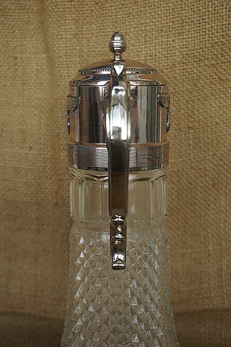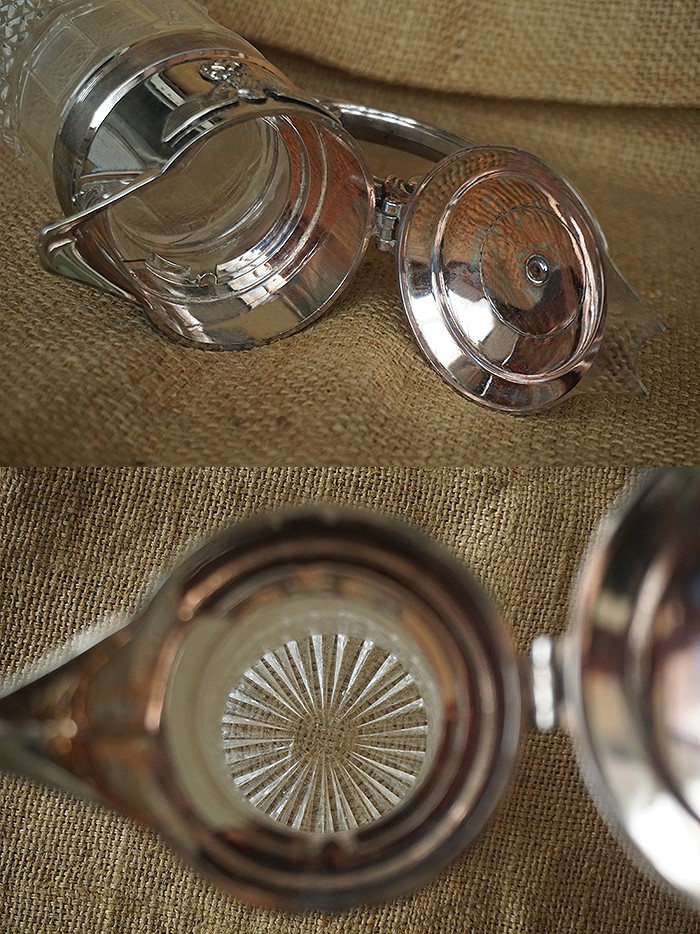 总高36CM,壶底直径14CM,壶帽是白铜合金镀银材质,两侧镶党鹰。壶身是水晶玻璃打造,无任何破损。该壶属二战德国高层党部酒店专用,极其硕大豪华。稍作清洁还能继续使用。