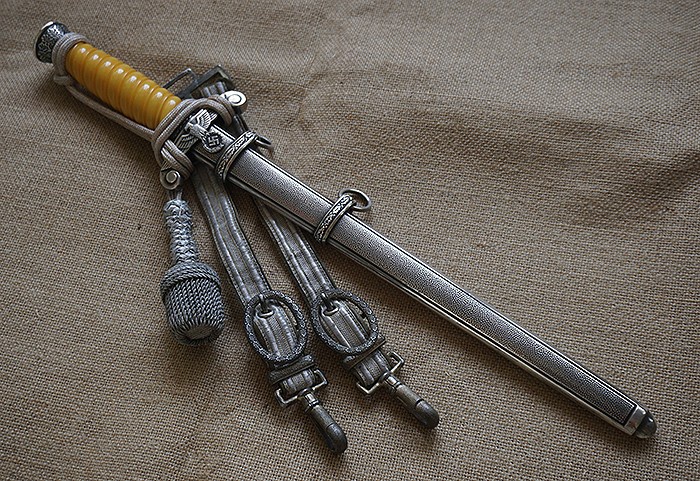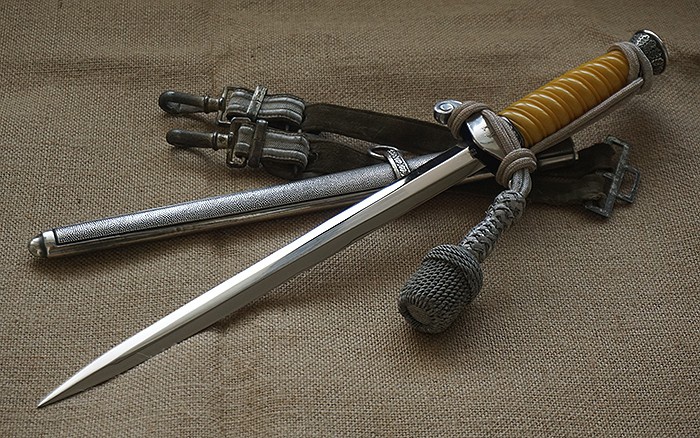全品相陆军短剑套装,护手背面带原主人名字的简写字母。