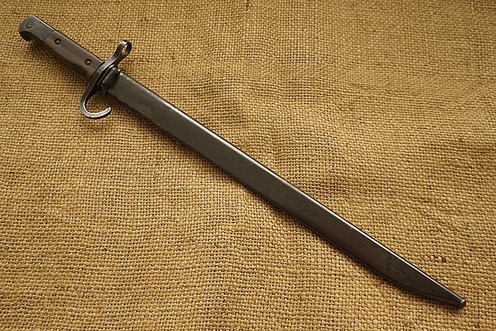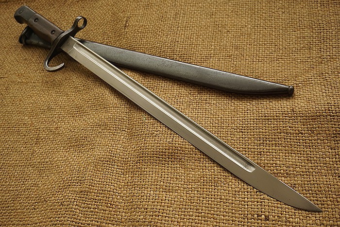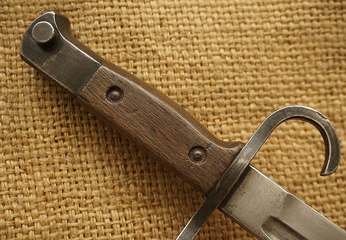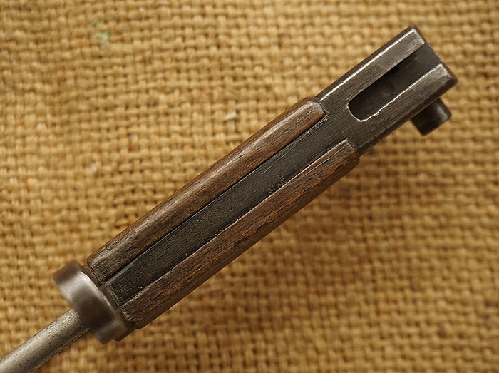 刀鞘无磕碰,鞘口附近轻微锈蚀,整体烤蓝完整。刀身基本全品相。