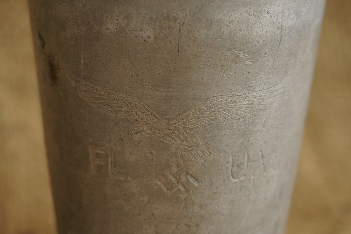 经历过战争的遗留物,总体品相不错,杯底有个弹片小坑,空军鹰标很清晰。