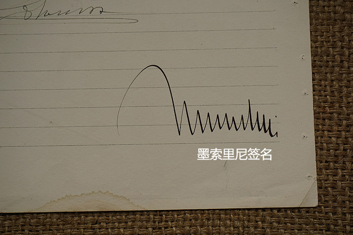 文件尺寸:长37.3CM、宽24.4CM,时间为1933年,抬头有“维克托·艾曼纽三世”的打印体,背面上方为意大利国王维克托·艾曼纽三世亲笔签名,右下方为墨索里尼签名,该文件附带一张1938年希特勒访问意大利时的原品相片,里面有墨索里尼、纳粹副元首赫斯、纳粹外交部长里宾特洛甫等人,相片尺寸:长17.1CM、宽12.5CM。不可多得的文献史料。