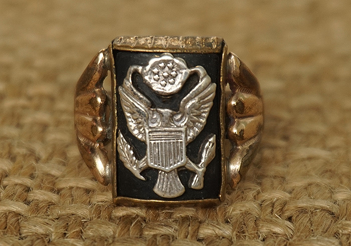 直径2.1CM,重约4.8克,14K金指环,表面的陆军鹰是银质。