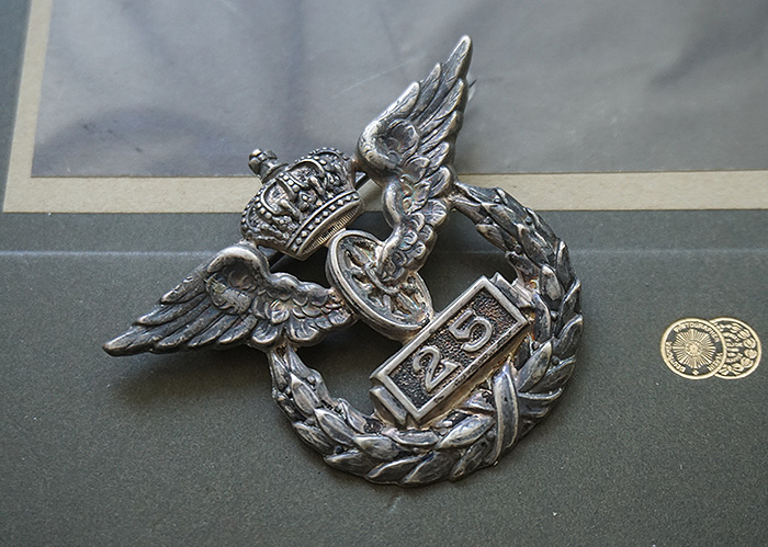 银级(白铜镀银),锌质空军鹰背带厂标,白铜镀银月桂花环。