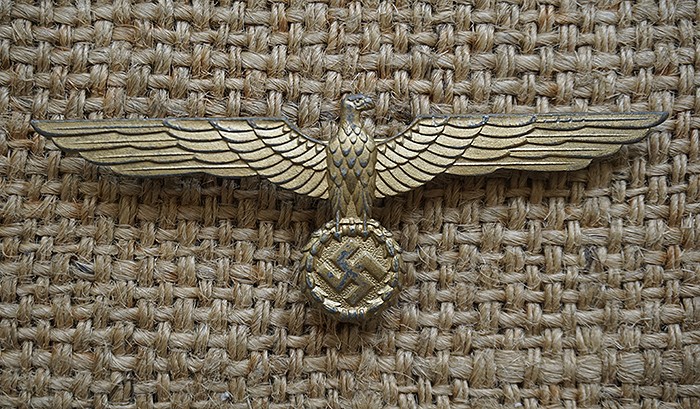 NSFK (德文National Socialist Flying Corps) 即国家社会主义飞行员的简称,于1937年成立并取代国家航空运动协会DLV(以航空协会名义训练飞行员),从德国各个军事/准军事组织去吸纳身体素质过硬的年轻人投身空军飞行员。该奖章是希特勒青年团受训比赛后颁发的,全品相,镍银合金材质,章体非常硕大,直径达8CM,厚0.4CM,重181.7克,正面是空军元帅戈林头像,上方德文:Plakette des Korps