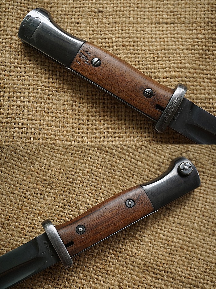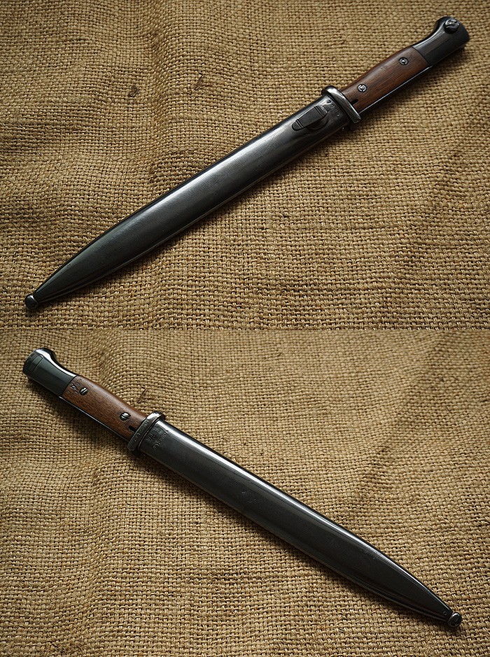 隶属北海舰队,战前1938年。刀身烤蓝约90%,没有磕碰,轻微的进出鞘痕迹。刀鞘烤蓝完整,几点极轻微小磕点。近十年来唯一一把品相完美的海军版98K,收藏价值堪比同时代的短剑。