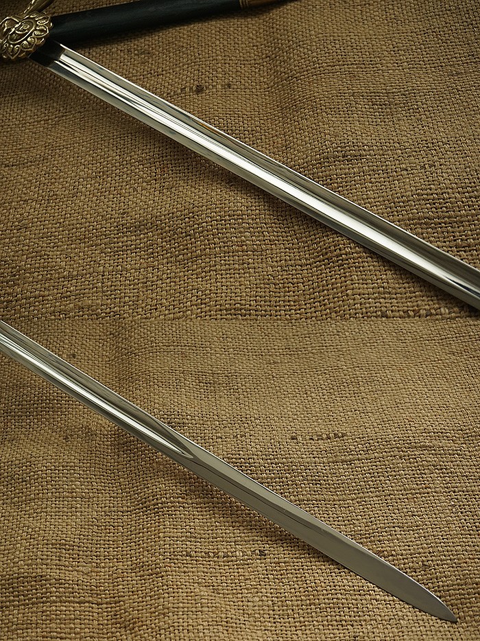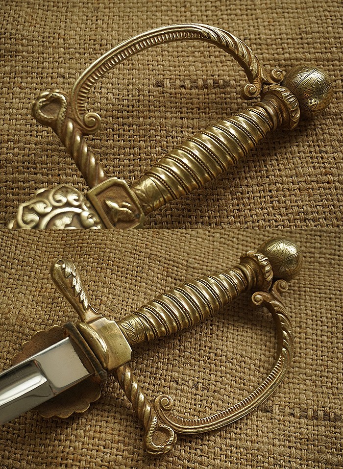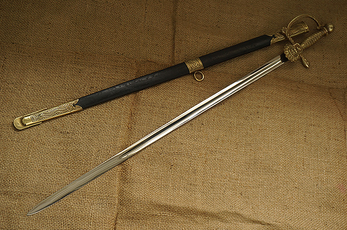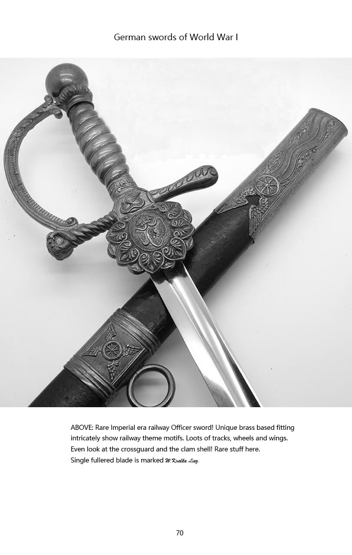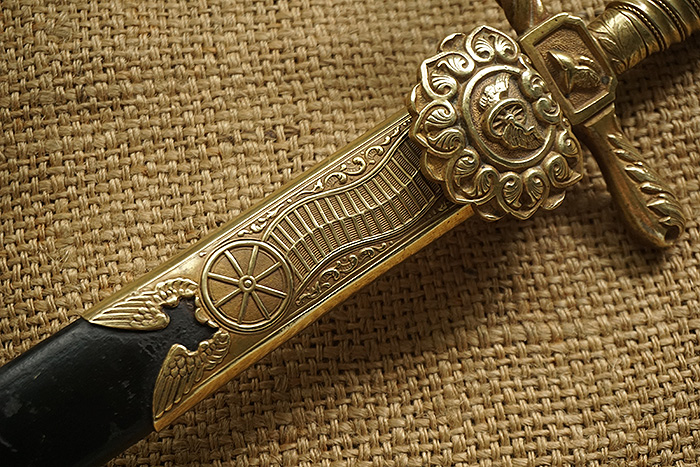 总长92CM,整体用料做工非常讲究。刀身全品相,镀镍层较一般礼仪剑要厚很多(跟国产65骑兵相似)。手柄、护手及剑身上的装饰全部是黄铜材质。其中护手装饰带“双翼飞轮”标志,代表铁路为帝国提速,柄末地球仪设计,铁路线分布球体,代表帝国铁路线未来将横跨贯穿世界各大洲。刀鞘上的构件装饰图案都是带轨道的“飞轮”标志,鞘身由皮革包裹铁鞘,手感非常沉重。德国在1871年统一后,法国割让领土阿尔萨斯-洛林地区给德国,帝国铁路总局随即在该地区成立,德国第一条铁路线随即产生。