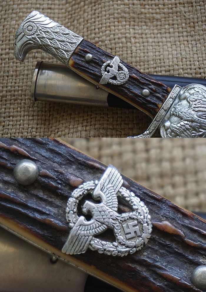 标题: 二战德国贝壳鹰饰市政警察卫队短剑 - 猎鹿者