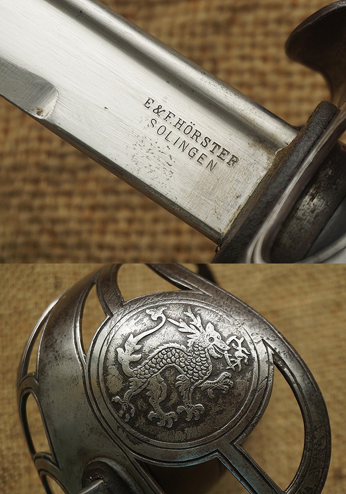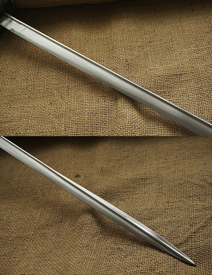 总长101厘米,全品相剑身,护手与刀鞘少许锈污。