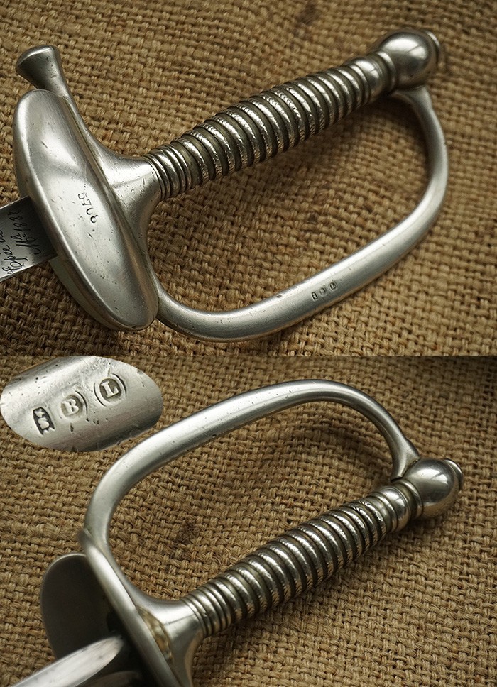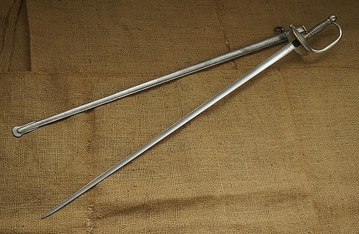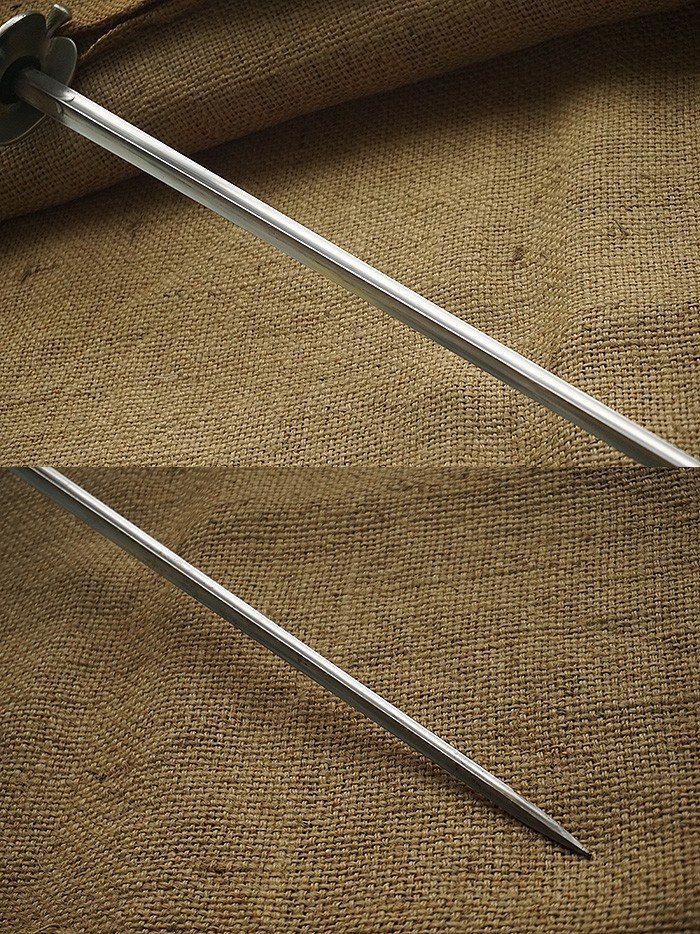 三棱式剑身设计,轻微历史锈污,刀台位置明确年份1888年。剑鞘仅一丁点可以忽略的小磕。全剑整体品相完美。