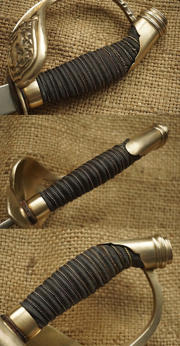 德国为清政府造,铜质护手铸刻中式麒麟图案,总长102CM,整体品相完美,仅鞘面几点轻微锈污,经历百多年历史沧桑仍保有这种状态极其难得!