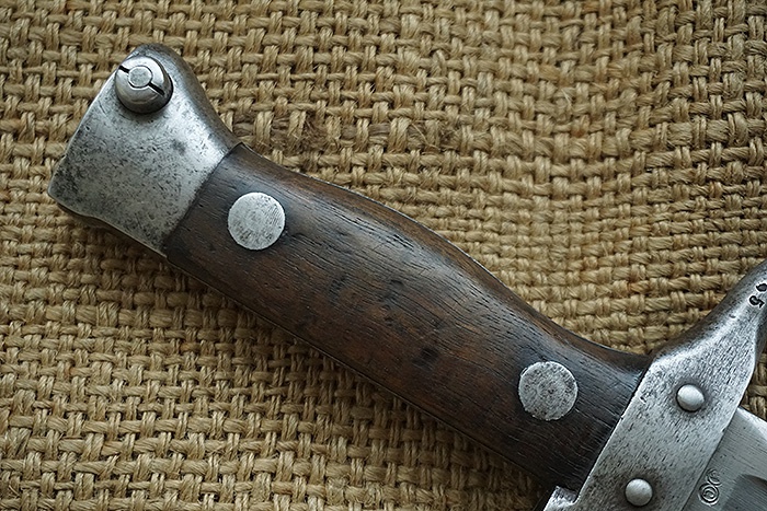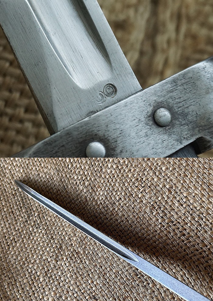 刀鞘烤蓝保存完整,轻微的点点浮锈,无磕碰。全品刀身。刀与鞘对号12295。