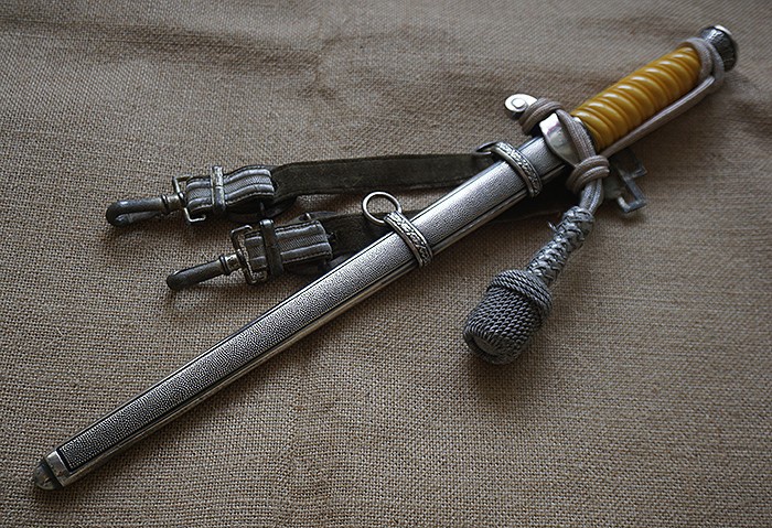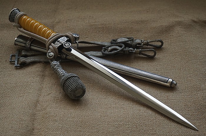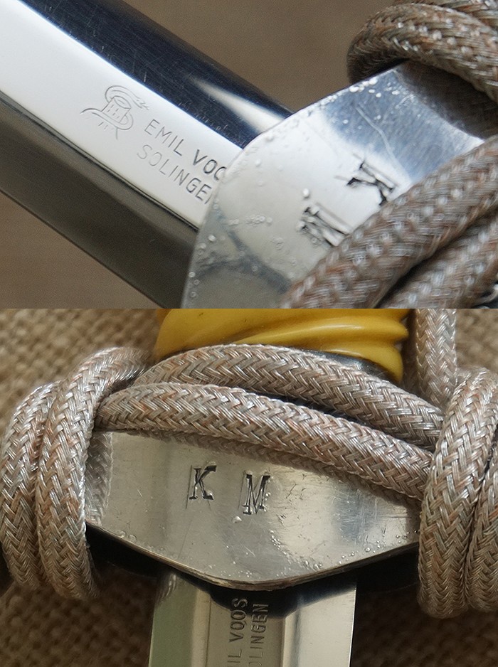 全品相陆军短剑套装,护手背面带原主人名字的简写字母。