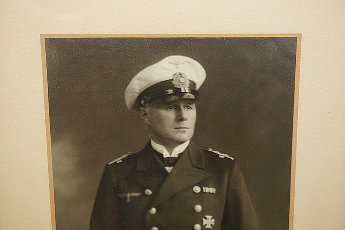 原品木框装裱,木框底托更换过,相片右下角为其本人于1936年的亲笔签名和附言。图末为其生前获得的各种奖项。