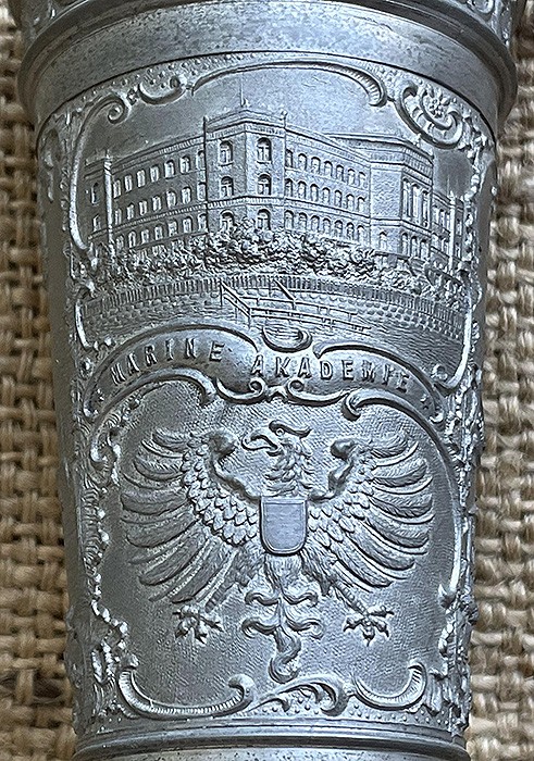 德意志帝国海军花瓶,锌质,高15.5CM,上口直径7CM,底部直径6.7CM,以海军为主题。