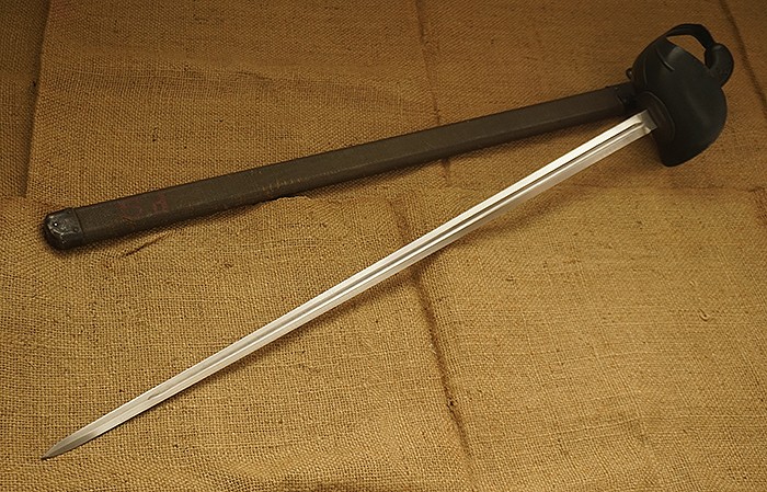 总长68.5CM,全品相刀身,刀台印戳06字样,代表1906年,铁鞘刷黑漆,表面少许轻微磕碰。