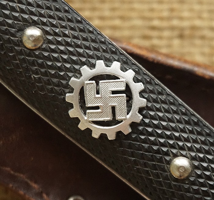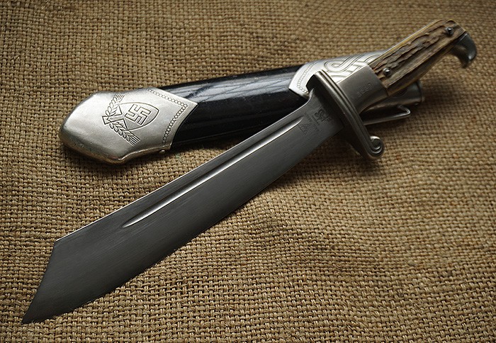 全品相刀身,鞘原漆约90%,原皮挂背面有第三帝国DRP邮政简写,全称Deutsche Reichspost,极其稀罕小部门刀种。