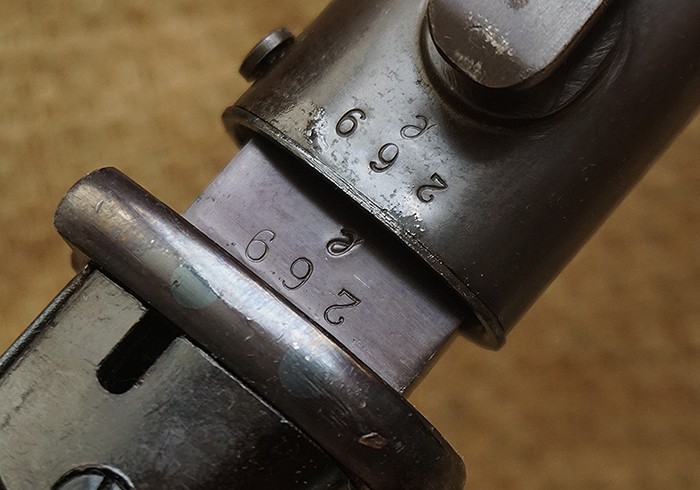 隶属北海舰队,战前1938年。刀身烤蓝约90%,没有磕碰,轻微的进出鞘痕迹。刀鞘烤蓝完整,几点极轻微小磕点。近十年来唯一一把品相完美的海军版98K,收藏价值堪比同时代的短剑。